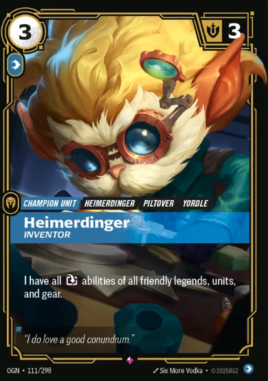 W decku działa tylko z legendą oraz z Orb of Regret. Jeśli wyrzucimy Orb, to umiejętność Heimerdingera staje się słabsza. Trzymałbym tylko wtedy, gdy otworzymy porządne karty mające activated abilities, np. Baited Hook, czy Seal of Unity / Insight.