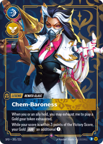 Sivir również pozwala na tworzenie Gold tokenów. Gdy recyclujemy runę, możemy tapnąć Sivir by stworzyć token. Podobnie jak w przypadku Renaty Glasc, nie jest to obowiązkowe.